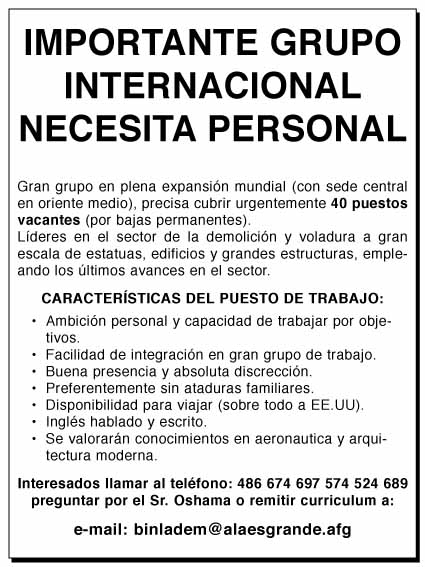 "Construccions i enderrocs Bin Laden. Truqui'ns i venim volant"